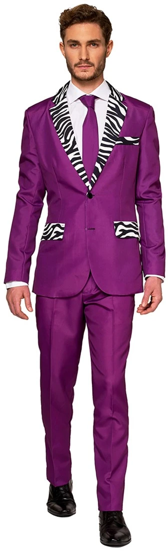 Fout, fouter…foutst! Dit Pimp kostuum is zo fout dat het ook wel weer stijlvol is. De zebraprint op de revers maakt het helemaal af. En zeg nou zelf: Mooi paars is niet lelijk. Ga dus lekker fout, maar toch in stijl naar het feest met de Pimp van Suitmeister en wees de koning van de dansvloer.