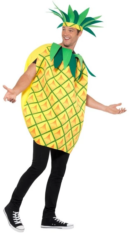 Verkleed je nu als een dansende en swingende ananas met dit pak! Een mooie volle bovenstuk met hoofdband leuk voor een tropisch feestje!