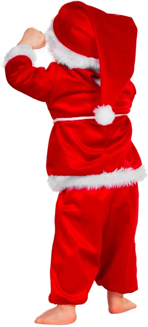 Baby Kerstmanpakje Fluweel, bestaande uit een bovenstukje, een broek, en een muts.