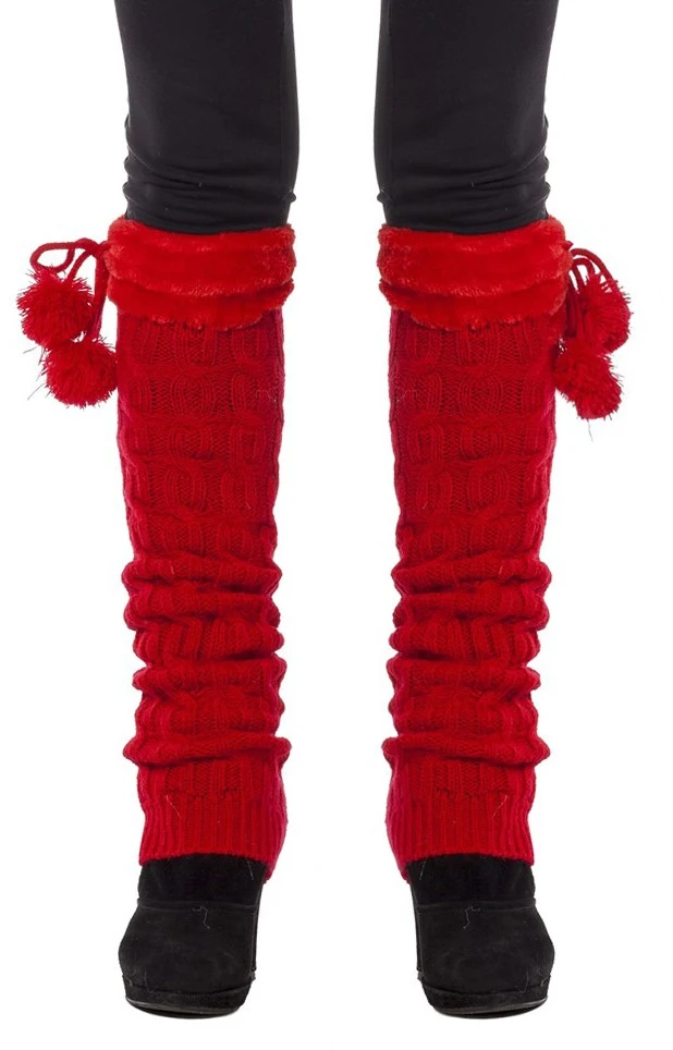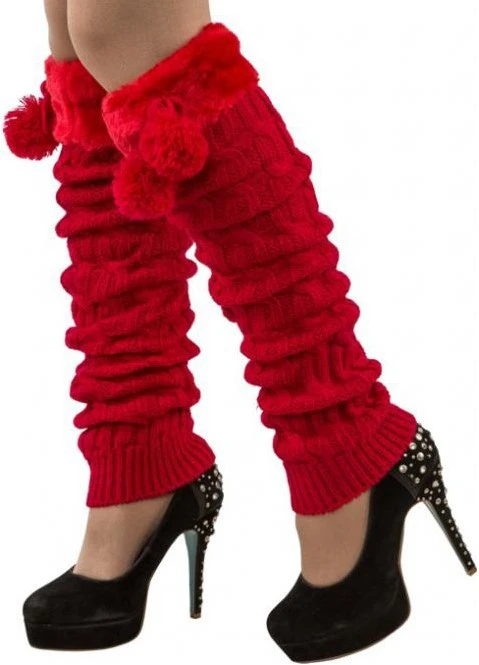 Mooie rode beenwarmers met een fluffy rand aan de bovenzijde. Hier gaat een touwtje doorheen met aan de uiteinden een bol. Dit touwtje kan je aantrekken, zodat de beenwarmers iedereen passen. Gemaakt van 85% polyacryl en 15%polyester. Leuk om aan te trekken naar een kerstfeest.