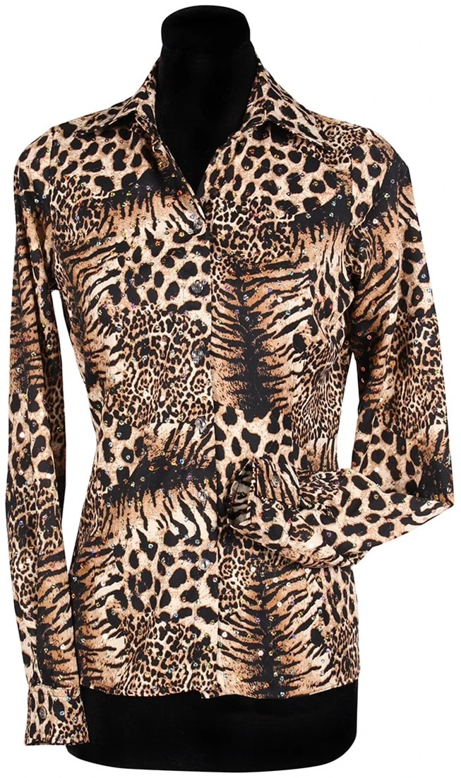 Details: over de gehele blouse kleine gekleurde pailletten