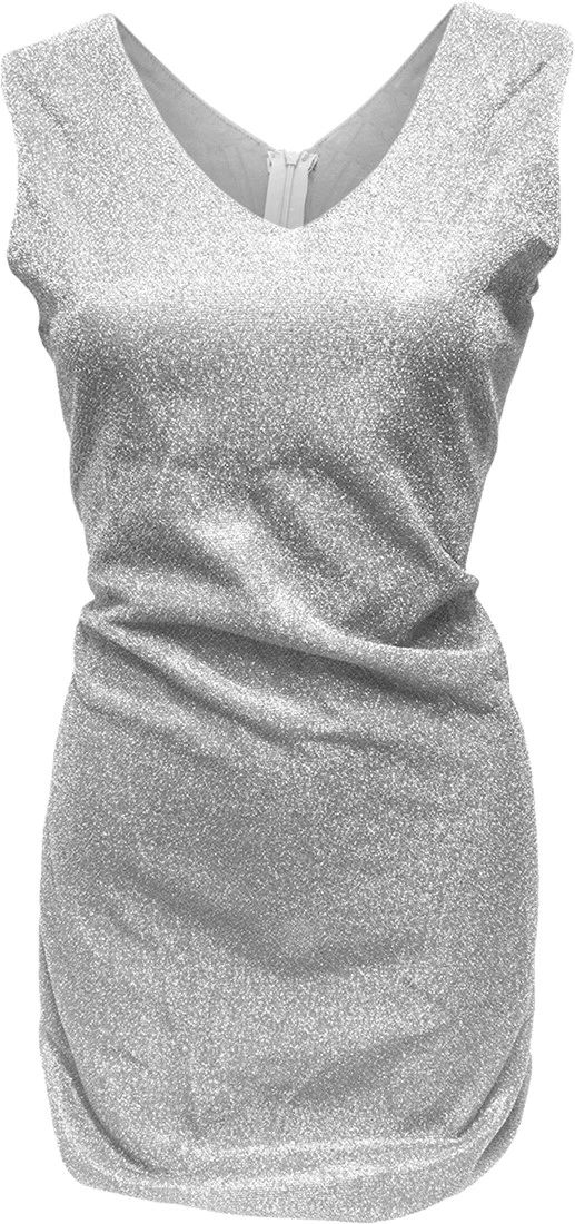 Een mooi zilverkleurig jurkje met glitterstof. Leuk om te dragen naar feestjes, zoals bijvoorbeeld een glitter of glamour feest.