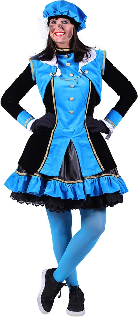 Een mooi zwart/turquoise pietenpak voor dames. Een leuk jurkje om aan te hebben tijdens de intocht of pakjesavonden en dergelijke.