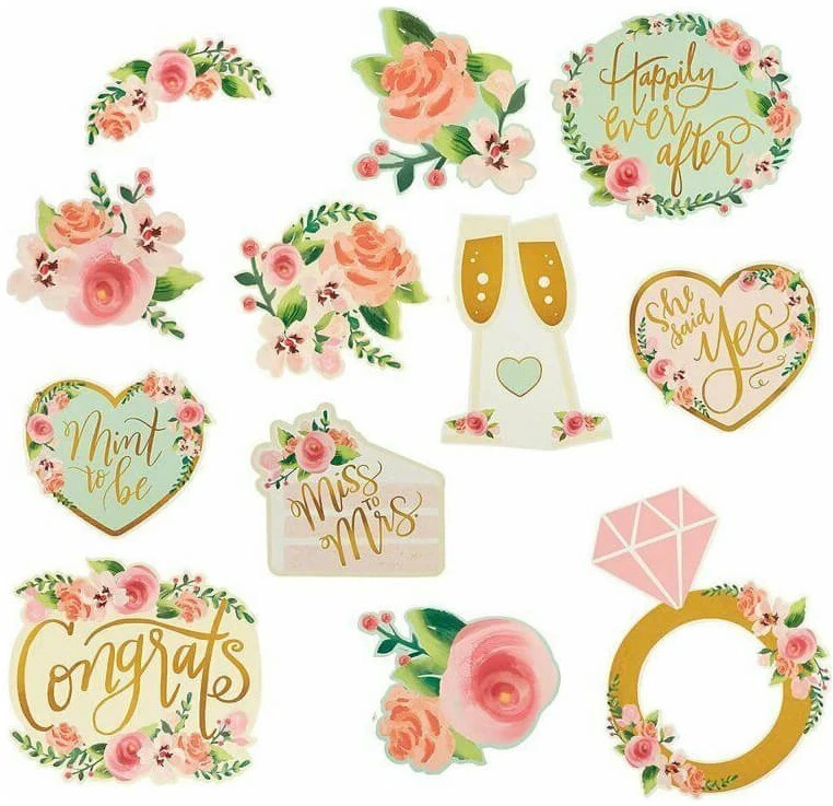 Tekst: congrats, mint to be, miss to mrs, she said yes en happy ever after