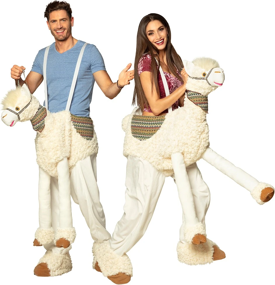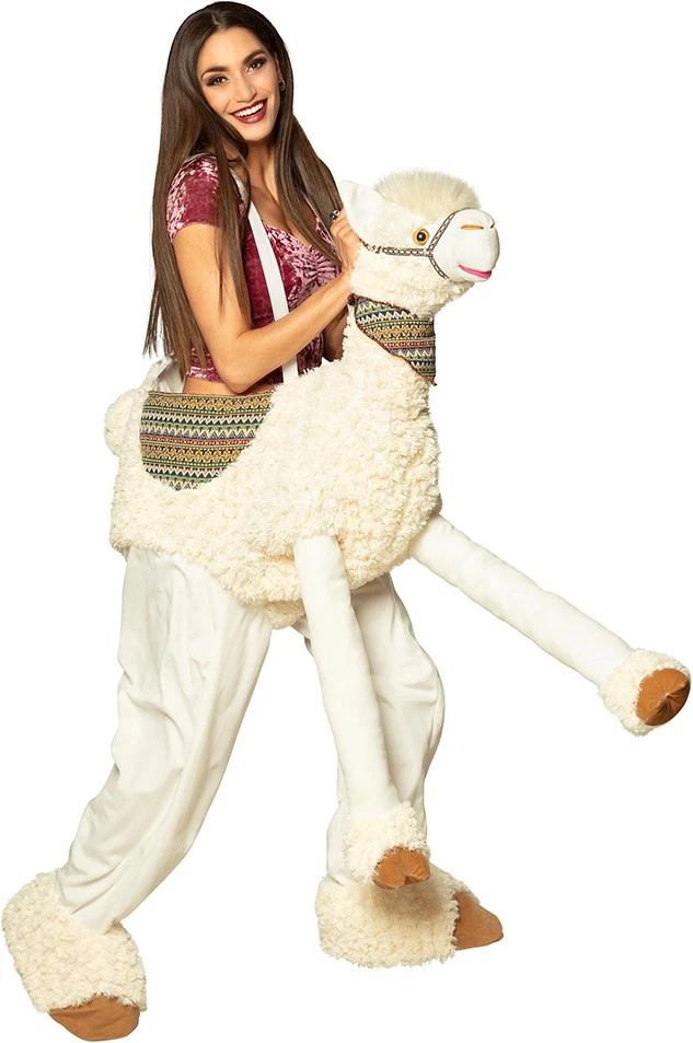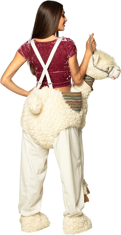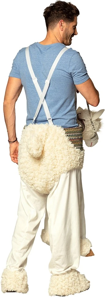 Met dit schattige maar grappige pak lijkt het net of je op de rug van een lama zit. Dit leuke pak bestaat ook in een kinder variant.