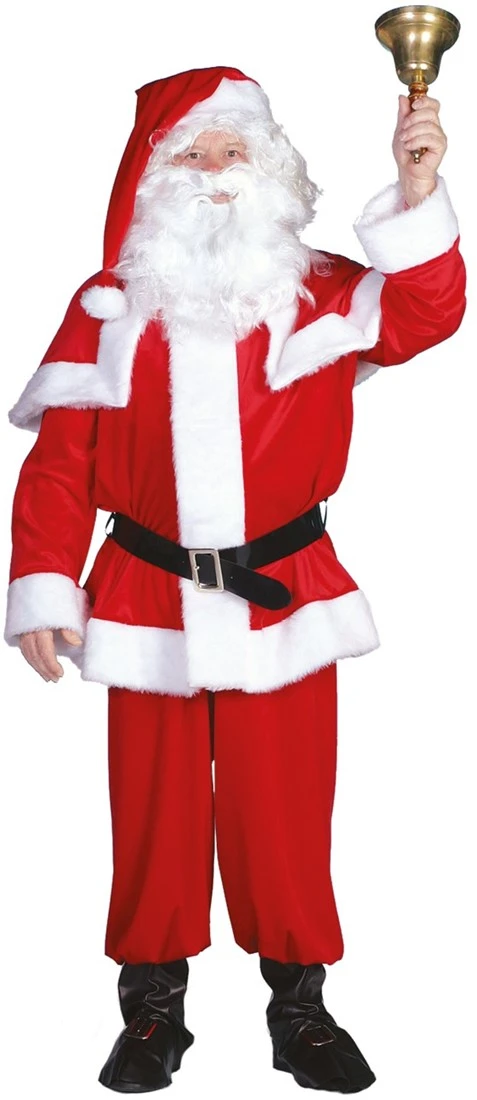 Kerstman Kostuum bestaande uit Jas, broek, muts en riem. Materiaal: zeer mooie polyester fluweel. Excl. Accessoires.