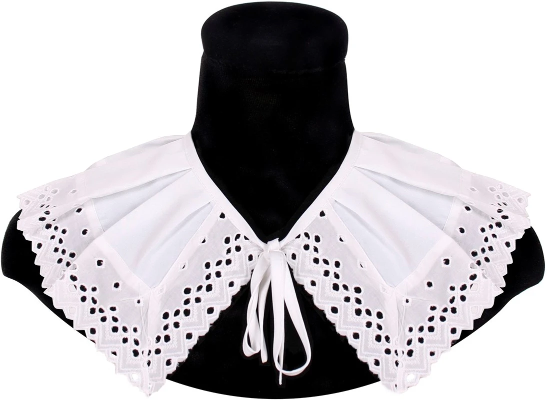 Kraag Piet Madrid. Deze kraag is van poplin gemaakt en is afgewerkt met katoen-kant. Deze kraag heeft een erg luxe uitstraling.