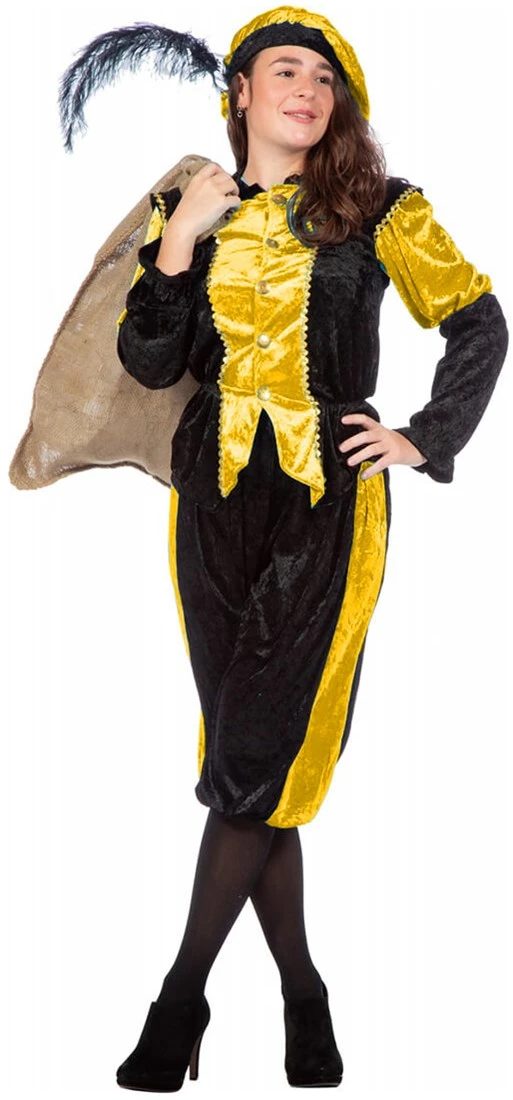 Details bovenstuk: getailleerd, velours de panne stof, twee kleurig en versierd met gouden lint en knopen