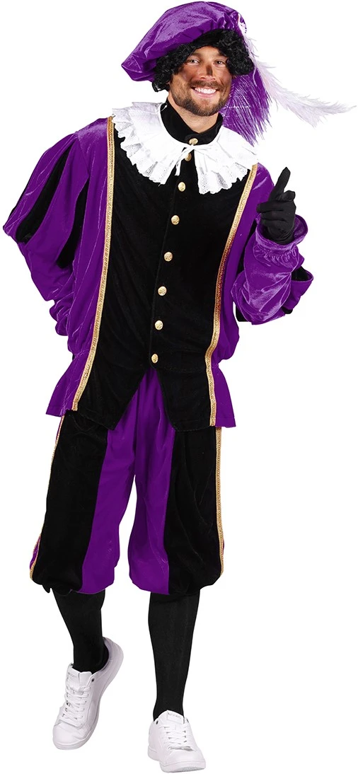 Een mooi pietenpak in het met gouden details en glanzende knopen!