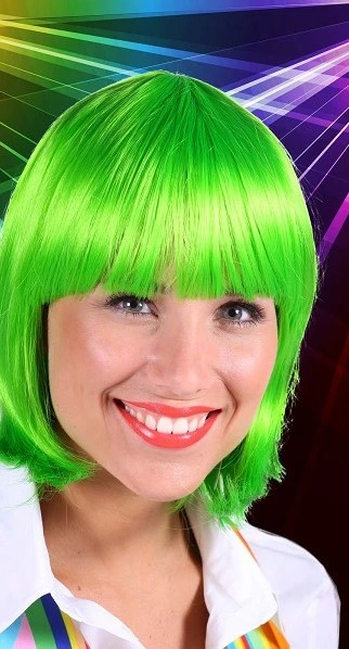 Mooie boblijn pruik groen Lola Luxe voor dames. Kort model met pony om bijvoorbeeld uw hippie of disco outfit compleet te maken. De pruik is verstelbaar voor een goede pasvorm en gemaakt van kanekalon fiber (hoogwaardig en realistische kwaliteit). In meerdere kleuren verkrijgbaar.