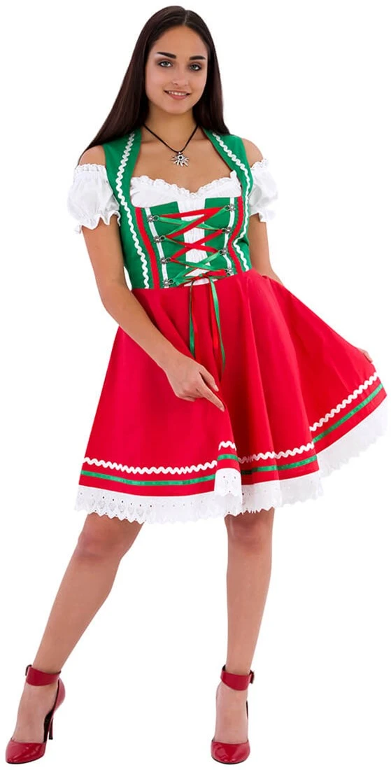 Deze vrolijke dirndl met zeer populair design is uitstekend geschikt voor een oktoberfest maar ook zeker als kerstelf!